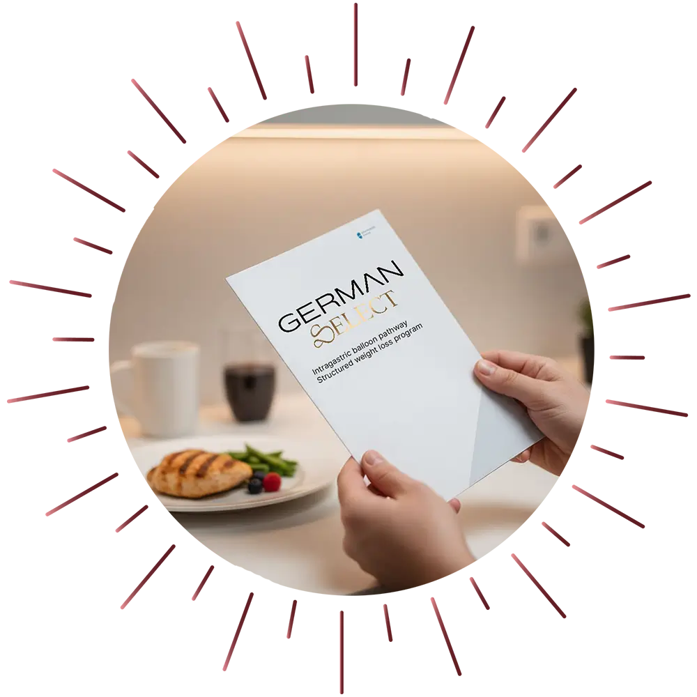 Throughout the balloon period, you follow a structured nutritional programme coordinated by your German Select team. Regular check-ins track your progress. Coordinator support is available throughout. Adjustment symptoms in the first week are managed with medication provided before you leave.